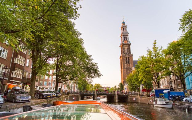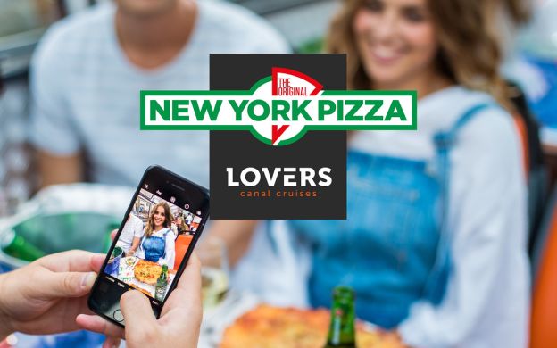 Enjoy a New York pizza as you cruise down the canals of Amsterdam. When you board the boat, you can place your order. Then, as you relax and enjoy the sights and sounds of Amsterdam's canal banks you can enjoy a drink and appetizer.