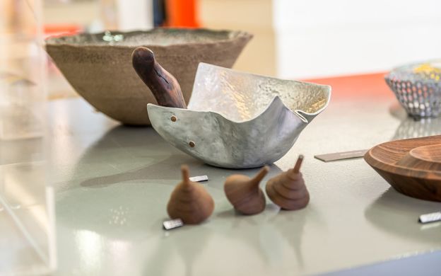 In the center of town, after a stop for coffee and a visit to a museum gift shop that promotes new designers by exhibiting and selling their work, you’ll visit a pair of jewelry shops where brand new motifs are being realized, often with the use of unexpected new materials as well.