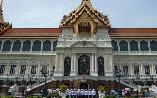 Please remember to dress respectfully as the Temple of the Emerald Buddha is Thailand's most sacred site. Men need to wear long pants and shirts with sleeves while women must make sure that they are not wearing transparent/translucent clothing and their shoulders as well as knees are covered. Additionally, one is not allowed to be barefoot - so, if you are wearing open shoes, please remember to wear socks.