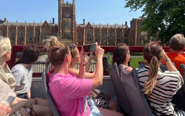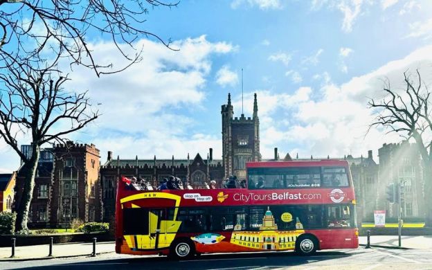 Hop on the bus at any of the stops to start the tour, the first stop is Donegall Square West beside's City Hall
