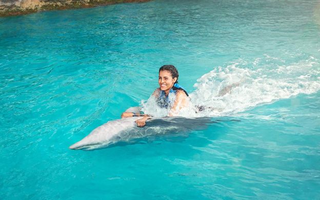 This fun experience doesn’t end with this! While you’re in the water, our marine mammal specialists will teach you very interesting information about dolphins, how we take care of them, their habitat, reproduction and nursing.