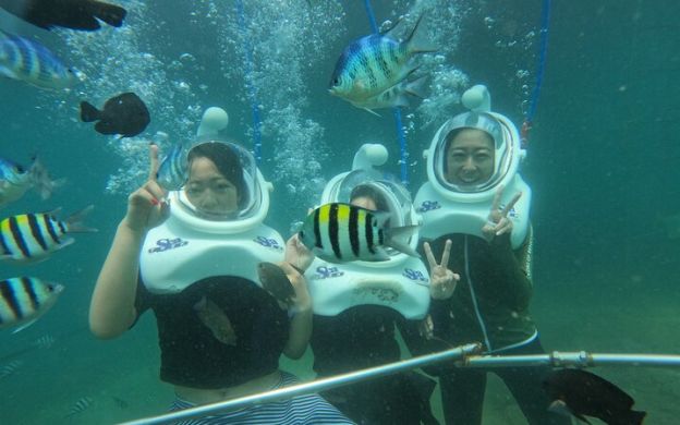 Although children between 4 to 7 years can take up the snorkelling, we are afraid little ones under the age of 8 years will have to sit out the underwater walking activity.
