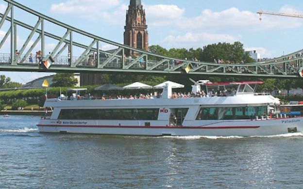 Make your way to KD Ticket Office,Mainkai, 60311 Frankfurt, Germany (located close to the bridge Eisener Steg)