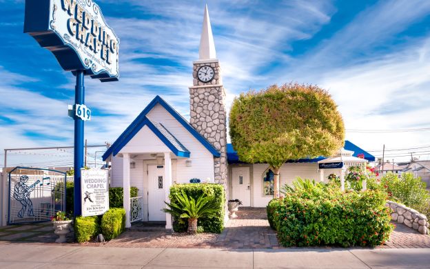The location of the chapel is on the North end of the Strip in downtown Las Vegas. The address is 619 Las Vegas Blvd South, Las Vegas, NV 89101. You must be 18 or older in order to marry in Las Vegas. Before getting married, you must obtain the marriage license. The Clark County Marriage License Bureau is located at 201 East Clark Ave., Las Vegas, Nevada. The charge is $77 (included) and the bride and groom must be present in order to obtain the license.