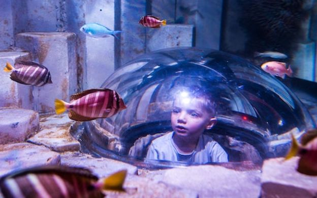 Explore bioluminescent beaches, journey through jellyfish gardens, watch coral spawning on the glowing nighttime reef, and see marine turtles, sawfish, reef sharks, and over 500 other beautiful sea creatures and tropical fish.